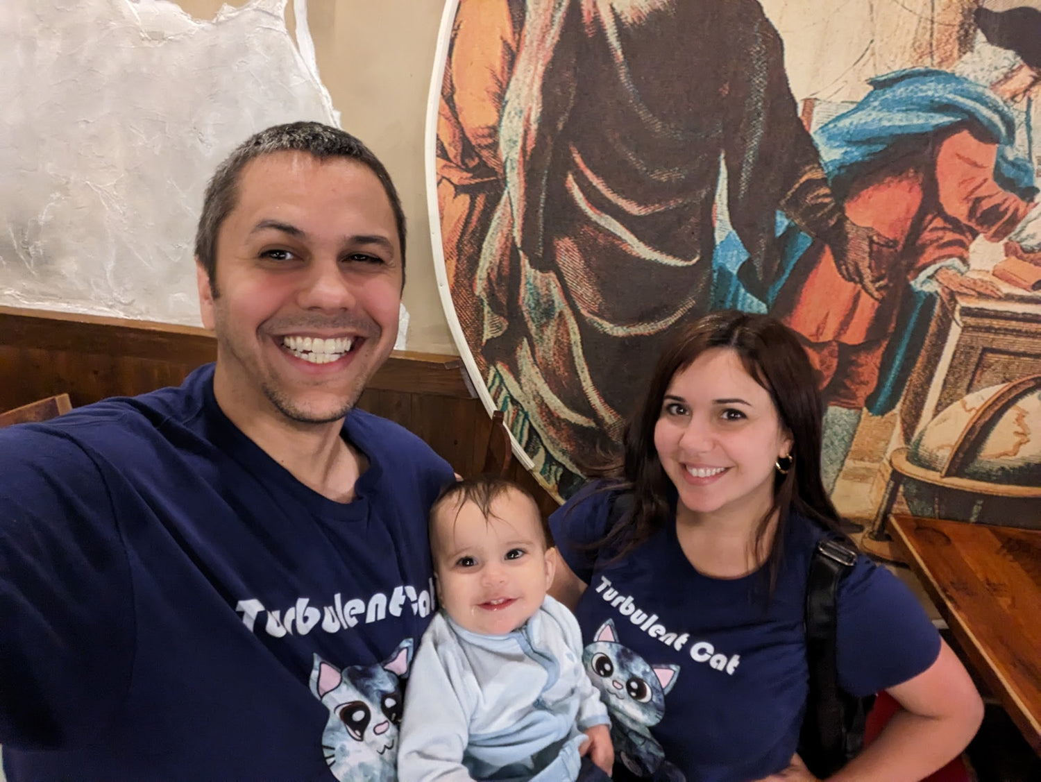 My wife, Ramona, is also a scientist in physical chemistry and has a wonderful sense of design. She is behind all the cool chemistry-inspired creations in our store. She has added new designs, color maps, and beautiful turbulence-inspired patterns. I am Puerto Rican, and my wife is Lebanese. We are a family of four—Tony, Ramona, Lara, and our baby boy, Leon, the newest member of our multicultural family.