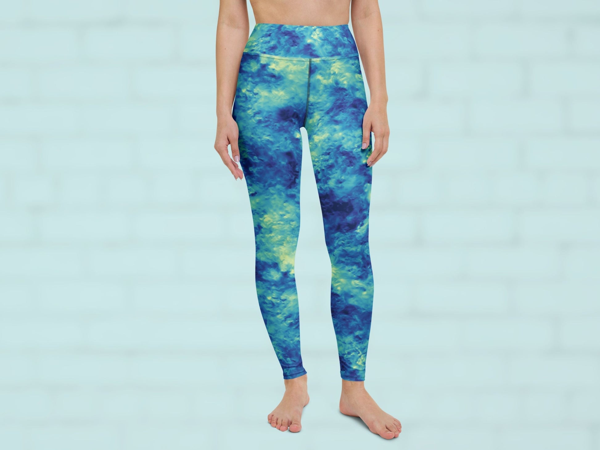 Tie Dye Water Blue Turbulence High Waisted Leggings