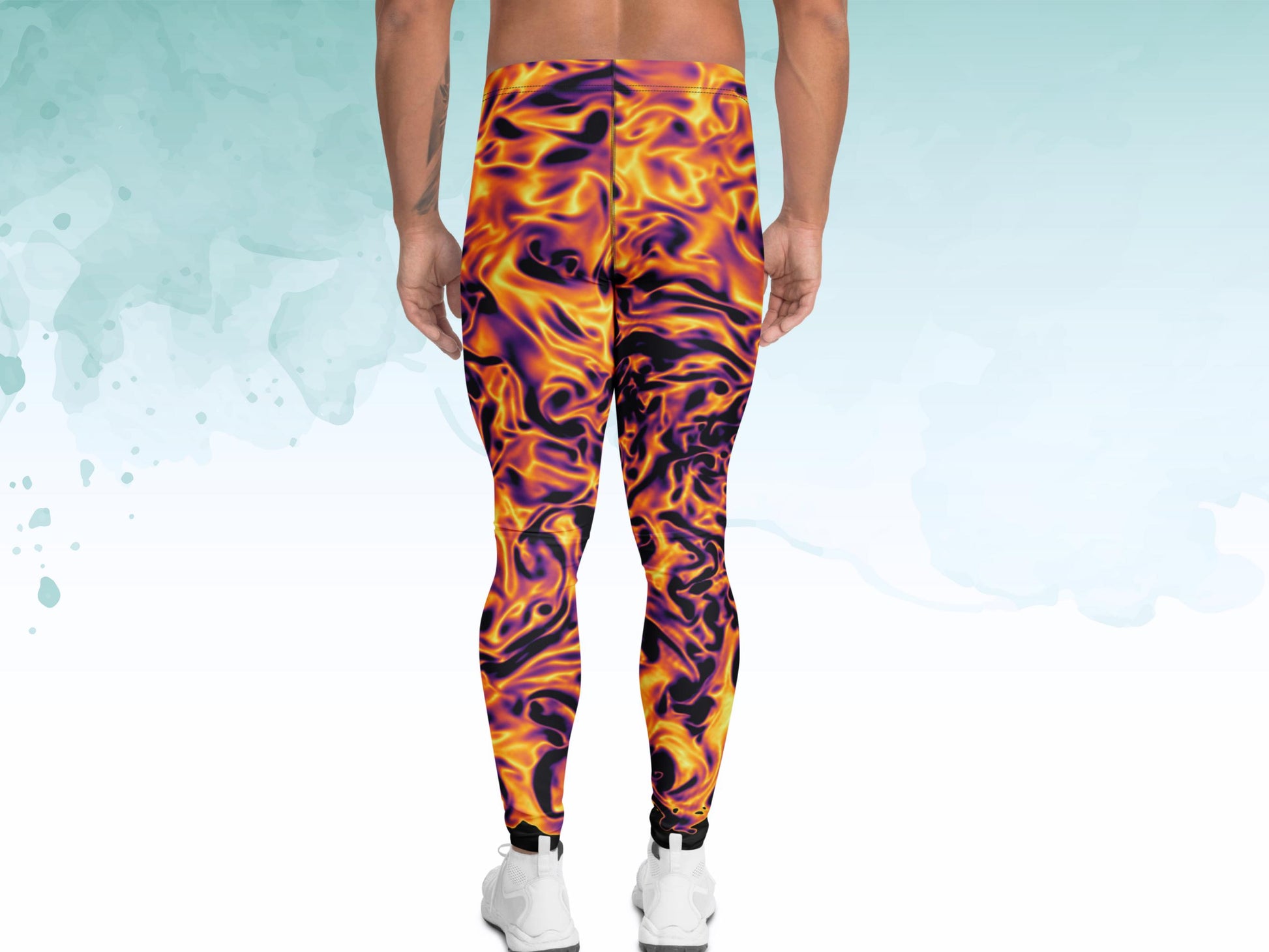 Level up your workout with these bold, science-inspired men’s leggings. Featuring a vibrant fluid dynamics print, these meggings are made from super soft, stretchy fabric that moves with you, whether you're training hard, hitting the beach, or layering under shorts for a sleek summer look. Designed for performance and style, they offer breathable support and standout energy. Geek meets grit in your new favorite pair of workout essentials.