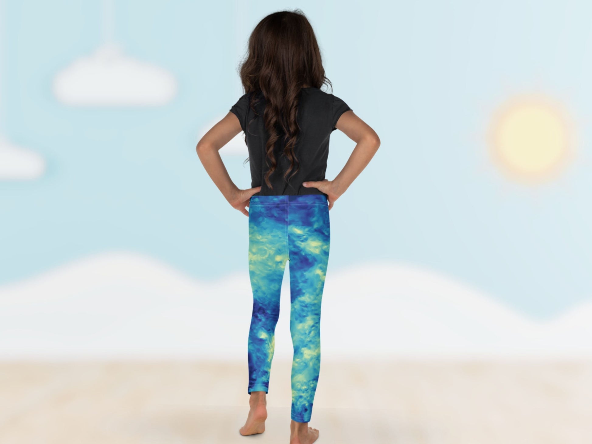 Your little one will love moving freely in these gorgeous tie dye leggings, where flowing water-blue patterns feature real turbulence science. Made for toddlers who are always on the go, they feature a stretchy elastic waistband and hardwearing material that is perfect with their climbing, running, and imaginative play adventures. The brilliant colors stay vibrant through endless washing cycles, so adventure never has to pause. Match them with our coordinating mom yoga pants.