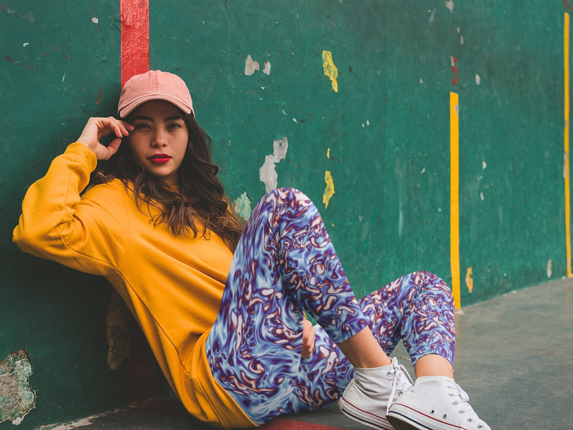 Pull on these Twilight High Waisted Leggings and wear the sky at dusk. Inspired by the rich colors of twilight, the design visualizes actual vorticity data from turbulence patterns—where science becomes wearable art. Each pair captures the swirling atmospheric motion in a beautiful dynamic print. The high-waisted cut provides dependable support for yoga, running, or everyday adventures.