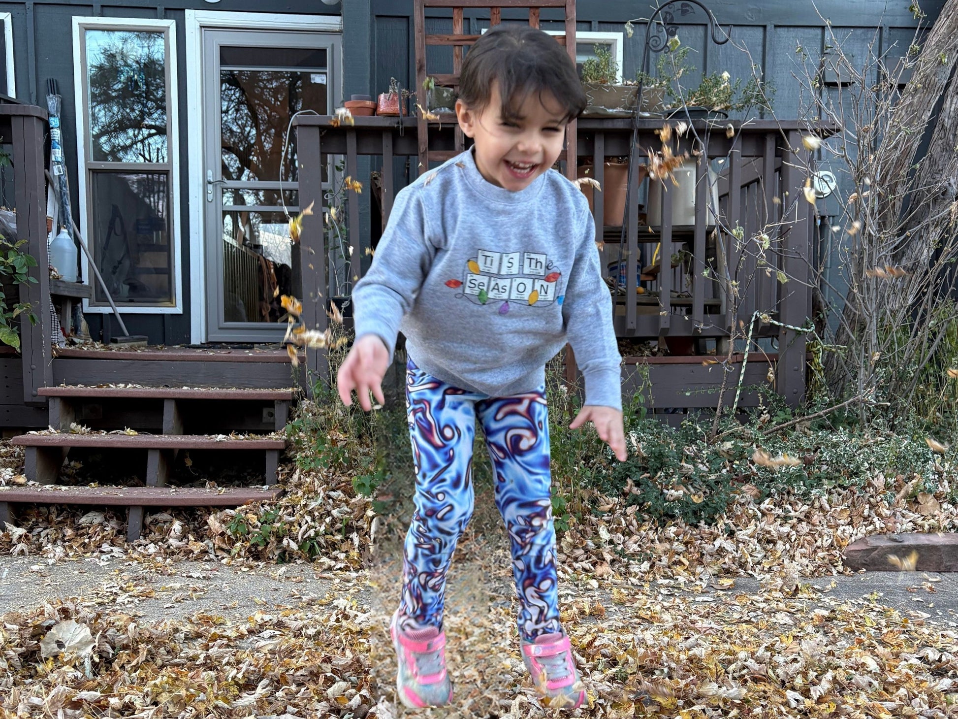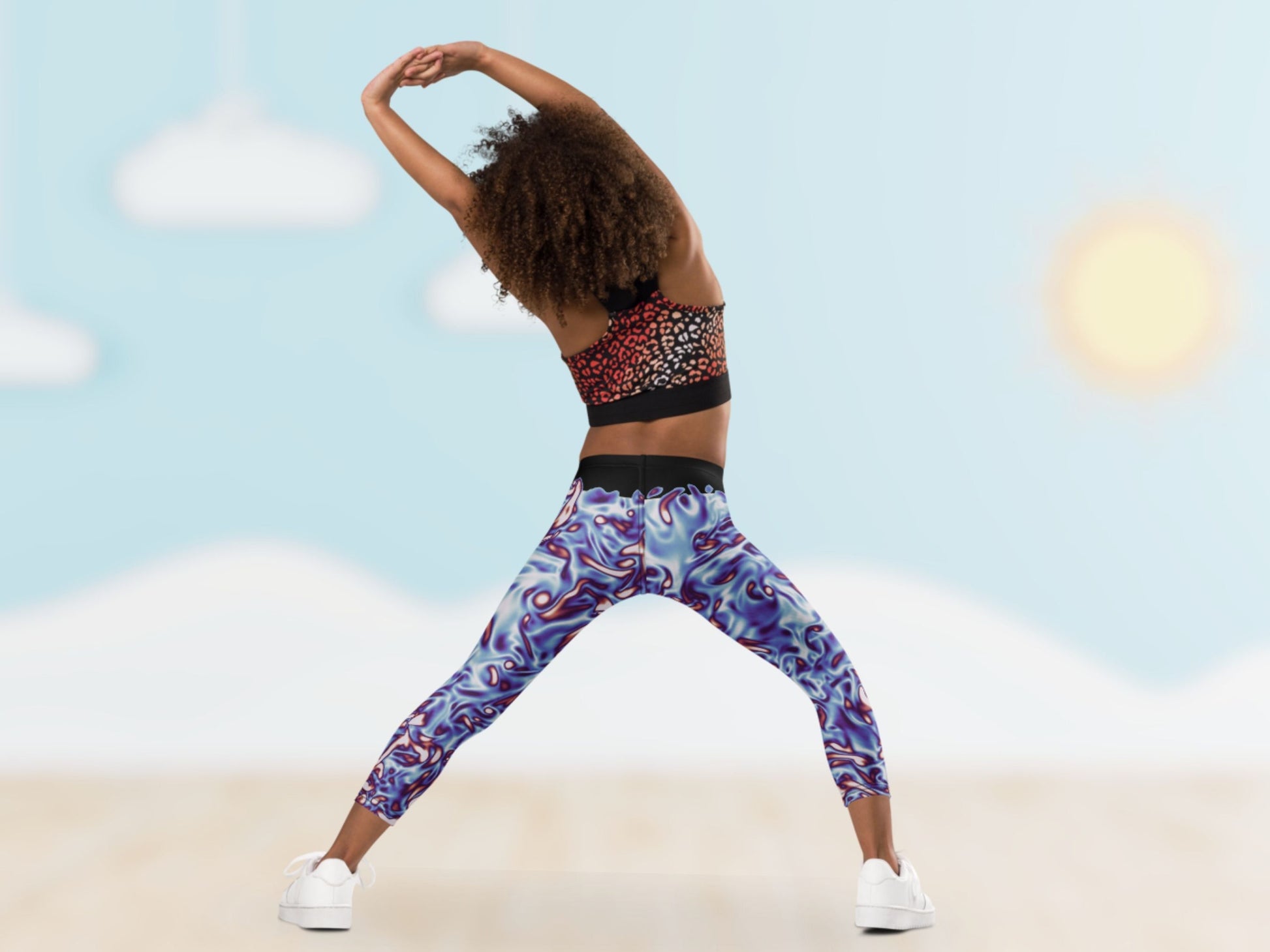 Designed for non-stop action, these kids' leggings blend comfort with durability for every adventure. The four-way stretch fabric and elastic waistband move freely through your kiddos' activities, while the twilight-inspired print—rich purples, deep blues, and soft glows— featuring real turbulence science data, stays vibrant wash after wash.